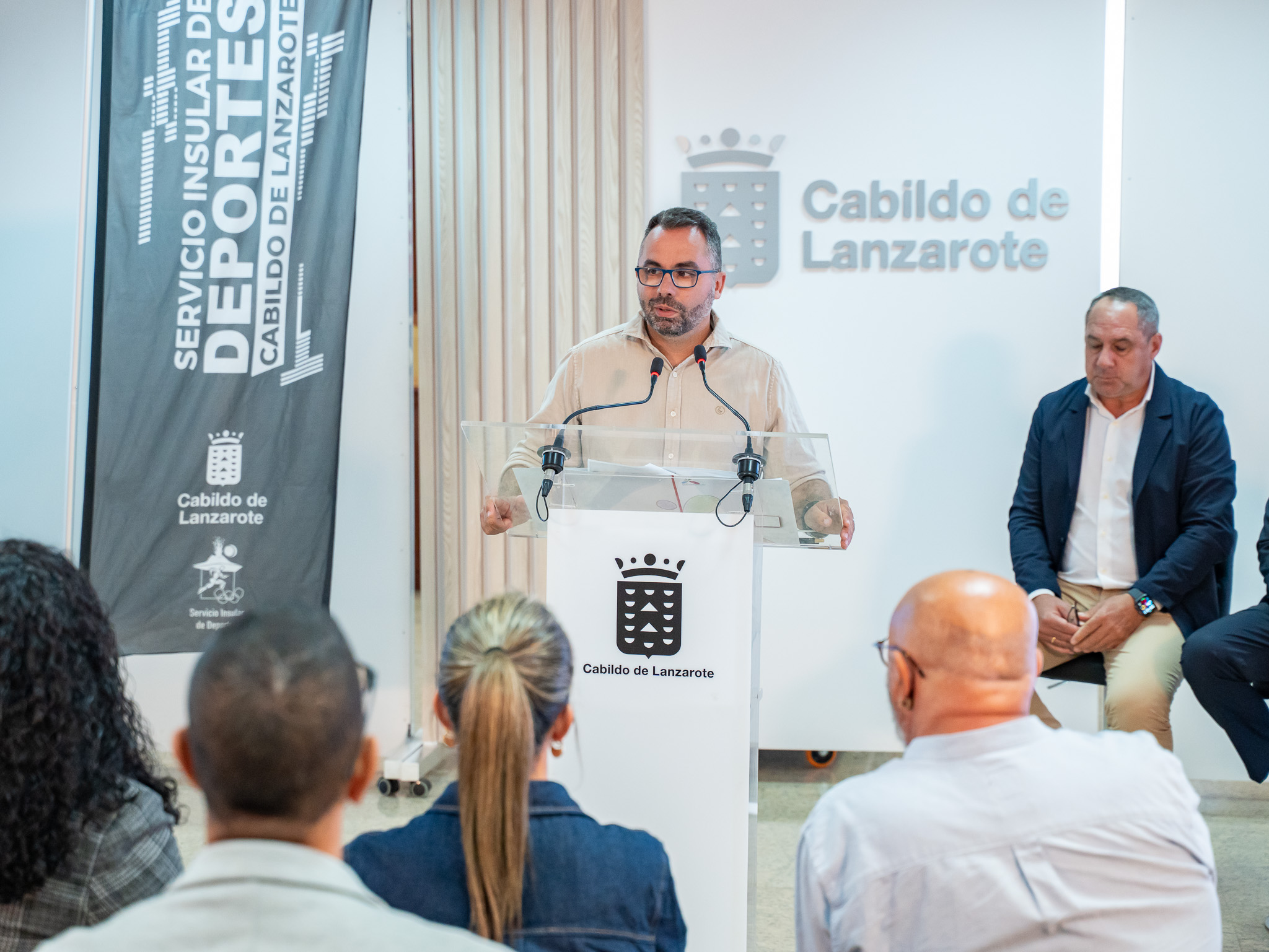 En la presentación estuvo presente el presidente del Cabildo de Lanzarote, Oswaldo Betancort; el consejero de Actividad Física y Deportes, Juan Monzón; y el teniente de alcalde de Arrecife, Echedey Eugenio; así como la vicepresidenta del Cabildo, María Jésus Tovar, y representantes de los siete ayuntamientos de la isla.