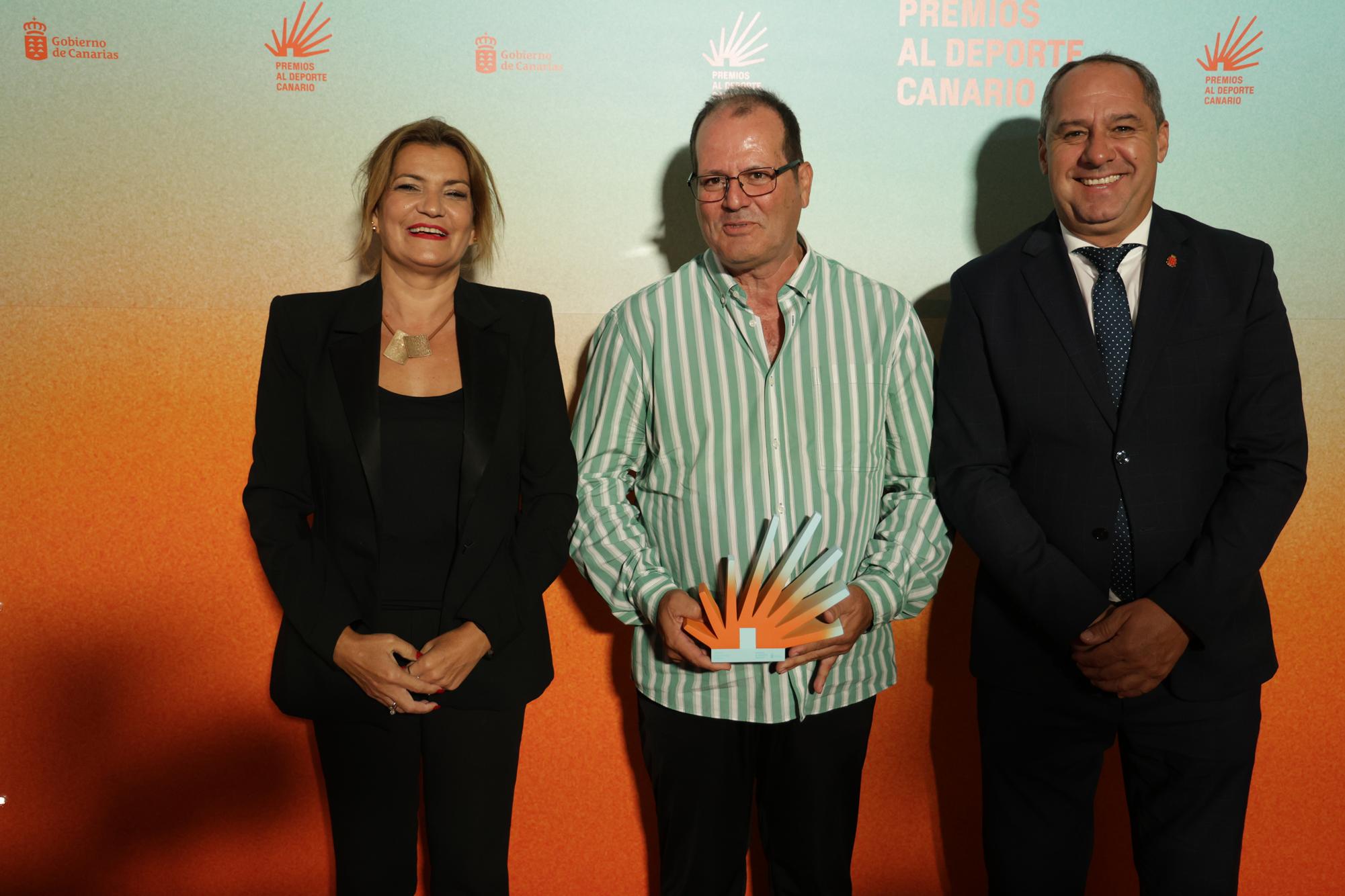 Manuel García Fuentes, conocido cariñosamente como el “Gomero”, recibió en la noche de este viernes un galardón en la gala de los Premios al Deporte Canario, organizado por la consejería de Educación, Formación Profesional, Actividad Física y Deportes del Gobierno de Canarias y enmarcado en la segunda edición de ExpoDeca.