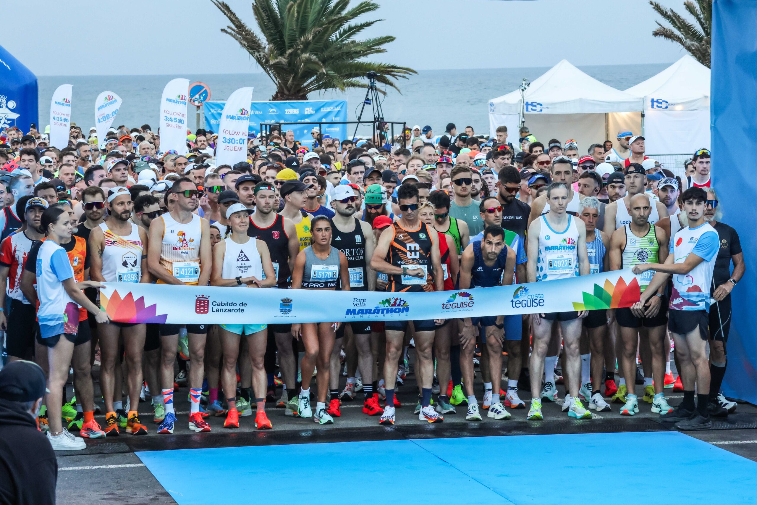 A las 8:00 horas se dio la salida de la modalidad maratón, con dorsales agotados desde hace meses y más de 1.200 corredores afrontando un recorrido que los llevó desde Costa Teguise hasta Puerto del Carmen y regreso, atravesando los municipios de Teguise, Arrecife, San Bartolomé y Tías, siempre con el océano Atlántico como compañero de viaje.